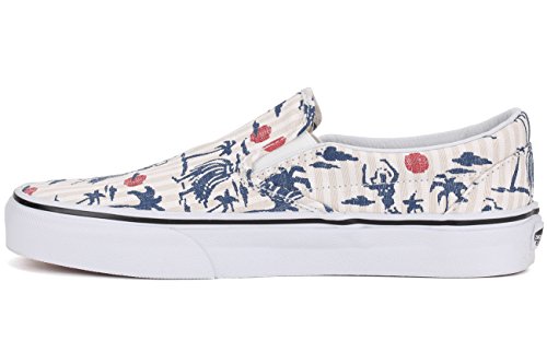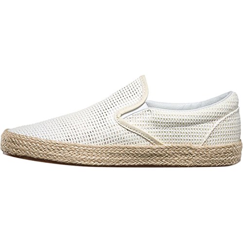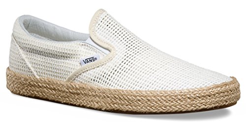 -. Feature : Classic Slip-On gets a summertime look with the new Classic Slip-On Espadrille / Combining a traditional mesh upper with an espadrille wrap / Elastic side accents / signature rubber waffle outsoles