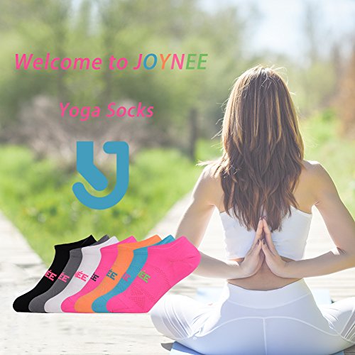-. Binding : Apparel -. Brand : JOYNÉE -. Department : womens -. Feature : Material of No Show Sock:83% nylon, 10% polyester and 7% spandex. / Performance:Mesh design coupled with lightweight synthetic blend increases ventilation to control moisture and keep your feet cool and dry. Arch compression adds support and stability to reduce foot fatigue. With 3D rubber antiskid nubs at the soles and a deep heel pocket provides the perfect fit and ensures the running socks stay in place even doing strenuous exercise. / Colorful and Dress design: These socks go well with both business attire and casual outfits.We have 5 color for you choose, you can match them with pretty much anything you have in your wardrobe. / One Size Fits Most Women: Women Shoe Size 5-9 (US)(Sock Size 9-11) / Machine Wash and Hand Wash:It will retain its good elasticity and softness even after being washed several times. -. IsAdultProduct : 0 -. ProductGroup : Apparel -. ProductTypeName : SOCKSHOSIERY -. Size : Sock:9-11/Shoe:5-9 -. Title : Non-Slip Yoga Socks-No Show Short Athletic Socks for Women by JOYNEE