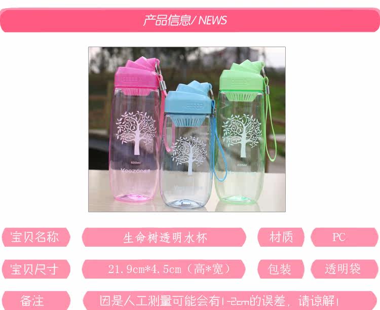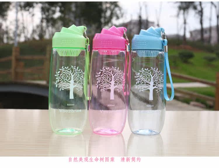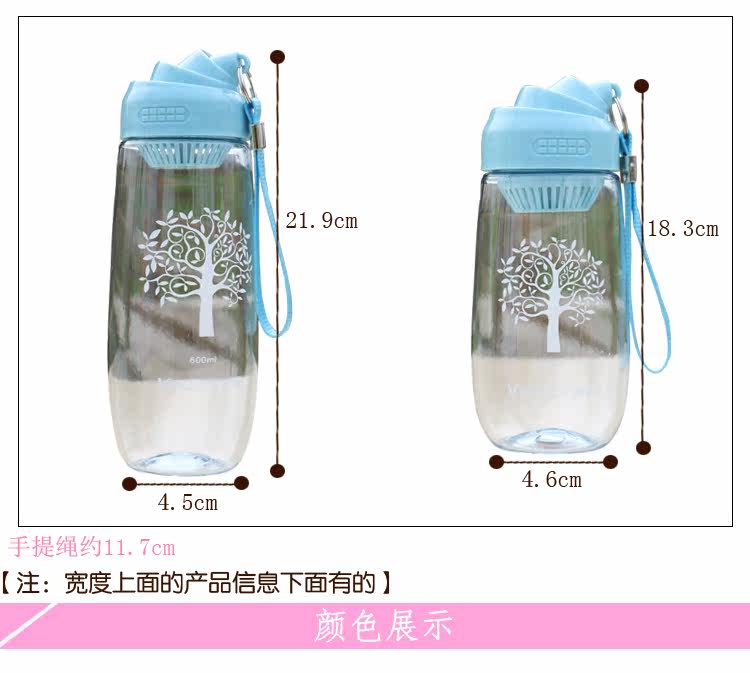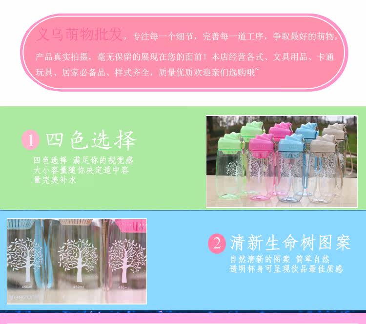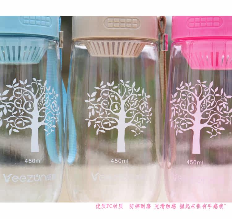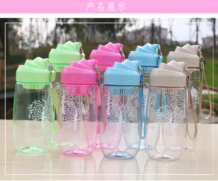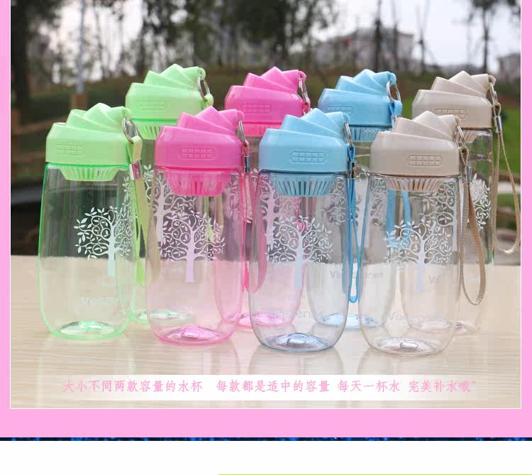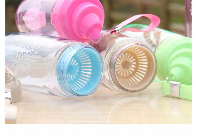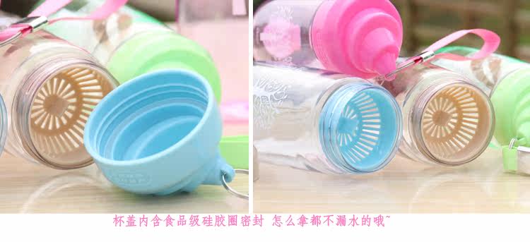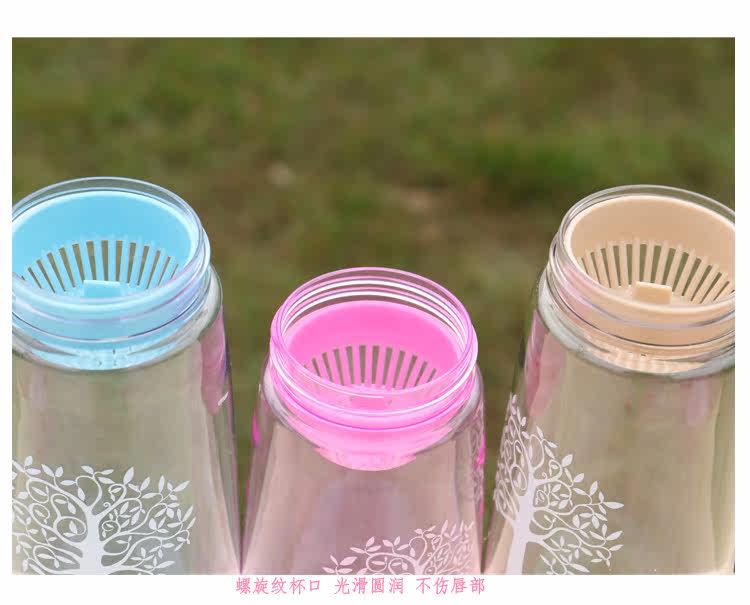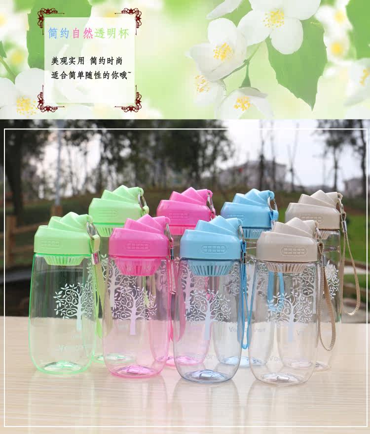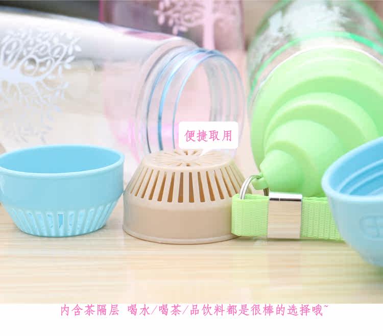 小清新夏季塑料杯子 韩国学生环保便携带盖 防漏带茶隔水杯随手杯