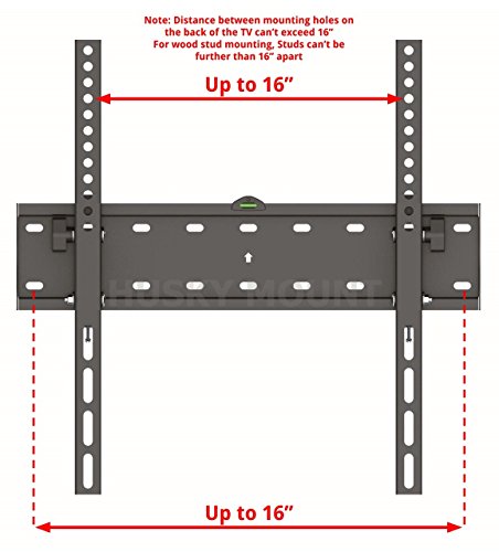 -. Binding : Electronics -. Brand : Husky Mounts -. EAN : 0646437731621 -. Feature : Fits most flat screen 26" - 55" TVs. Please note this is a general guidance only. Your TV is compatible with this wall mount as long as the distance between the mounting holes on its back is 16" or less apart horizontally and 16" or less apart vertically. In TV mounting standard terms up to VESA 400X400 / Maximum weight capacity 88 lbs. Heavy-Duty Steel Construction TV wall mount. Easy installation. 17" wide wall plate suitable for concrete/brick wall or drywall with studs up to 16" apart. / Tilts down for optimum viewing angle & glare reduction. Low profile design TV bracket, The TV sits 2 1/2" away from the wall when set straight. Note, if the cable plugs are located behind the TV, you won't be able to access them easily while the TV is mounted. / Security locking mechanism to hold the TV secure and safe on the wall. 25 Year Warranty. Hardware and instructions included. Note: the TV screw sets provided are of standard size. They will fit the majority of TVs on the market. Should your TV require a different sized screw; the size can be established through the TV User Manual and can then be purchased from your local hardware store. Please reach out to us if you have any problems at all. / Few points to consider before buying this mount; 1- the distance between the studs can't exceed 16". 2- The distance between the TV mounting holes can't exceed 16", horizontally and vertically. 3- The low profile design will set your TV 2 ½" away from the wall which makes it not very easy to access the cable plugs (if they are located on the back of the TV) while the TV is mounted -. Label : Huksy Mounts -. Manufacturer : Huksy Mounts -. ManufacturerPartsWarrantyDescription : Lifetime Limited Warranty -. Model : TL-55LM -. MPN : TL-400LM -. PackageQuantity : 1 -. PartNumber : TL-400LM -. ProductGroup : PC Accessory -. ProductTypeName : COMPUTER_COMPONENT -. Publisher : Huksy Mounts -. Studio : Huksy Mounts -. Title : Husky Mount Tilting Flat Slim TV Wall Mount Bracket Fits Most 32 40 42 46 47 50 52 55" & other LED LCD Flat Screen Max VESA 400X400 or 16"X16" Pattern(please measure distance between TV holes & Studs) -. UPC : 646437731621