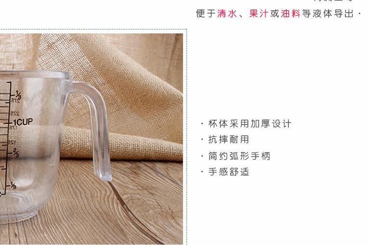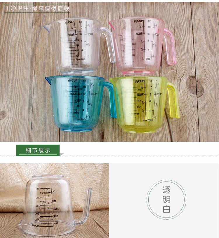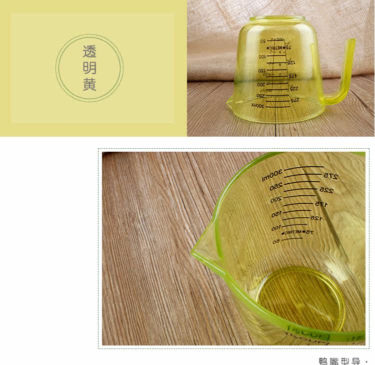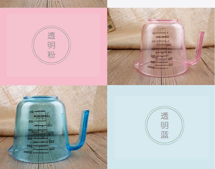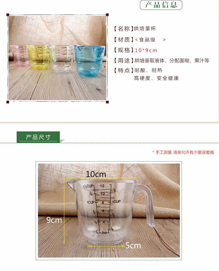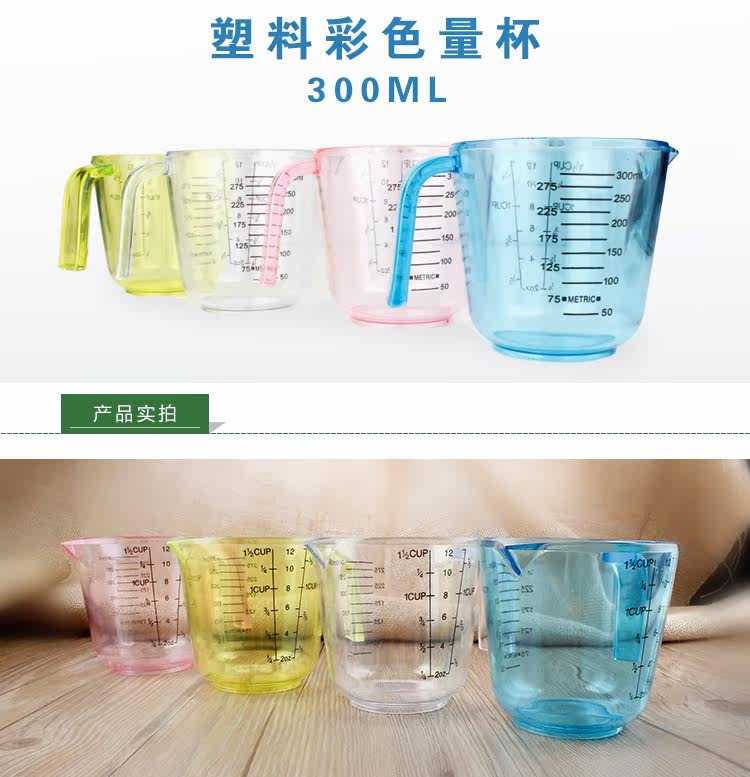 烘焙工具塑料彩色量杯奶茶调味杯透明量杯带刻度300ML大容量