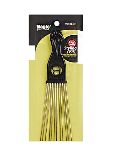 Afro Hair Pick Extra Large Long Black Fist Long Fan Metal Pik (B-2411)