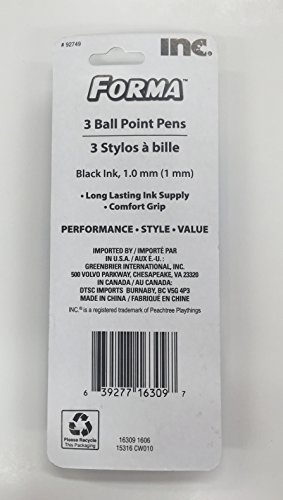 -. Feature : Comfort Grip / Super Smooth Writing / 1.0 mm Black Ink / Three different color barrels