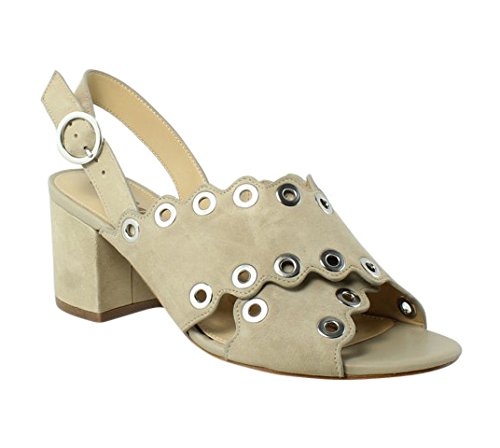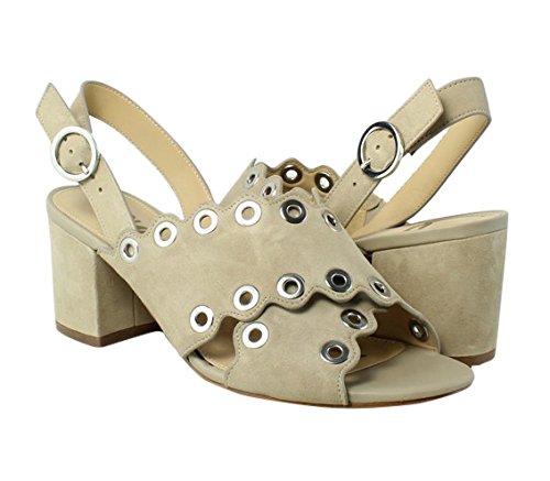 Product DescriptionBlock heel sandal with scalloped criss cross straps and grommet detail0