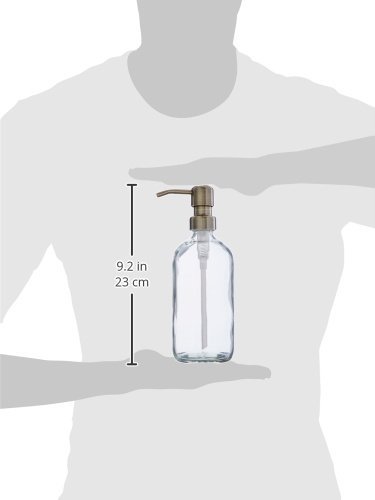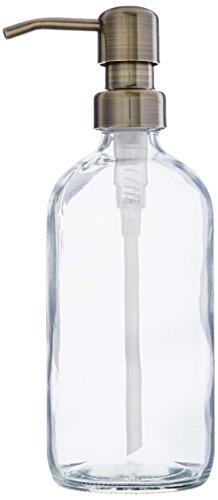 Clear Glass Soap Dispenser with Brass Metal Pump - Clear 16oz Glass Jar Lotion Bottle by Industrial Rewind (Brass)