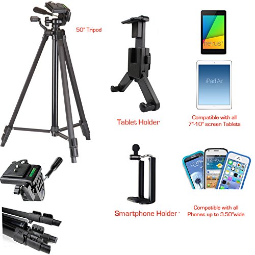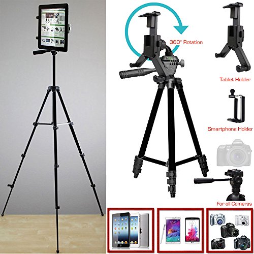 ChargerCity XL-52 inch Smartphone & Tablet Holder Selfie Photo Booth Camera Tripod Kit w/360° Rotation for Apple iPad Pro Air Mini iPhone 7 Plus 6s MicroSoft Surface Samsung Galaxy Tab S7 Edge LG V20