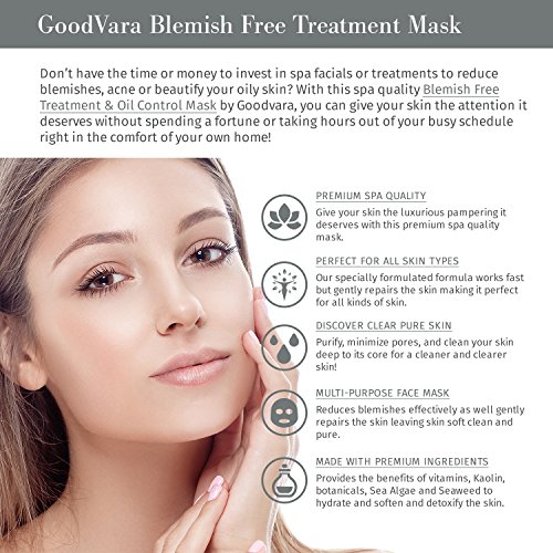 Goodvara Premium Blemish Free Treatment Mask & Oil Control - Acne Treatment Face Mask for Hormonal Acne, Teens, & Adults – Facial Mask To Reduce Wrinkles, Blemishes, Blackheads & Pore Minimizer