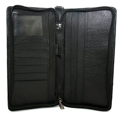 -. Brand : Ashlin® -. Color : Black -. Department : unisex-adult (lage only) -. EAN : 0626183057220 -. Feature : 6 credit card pockets and an ID section / Zippered Airline e-ticket wallet for securing your documents and passports / Inside right hand side has 3 long pockets for additional storage / Removable short wrist strap and a centre pen loop / Fits USA, CANADIAN and International passports. -. Model : T7774-18-01 -. MPN : T7774-18-01 -. PackageQuantity : 1 -. PartNumber : T7774-18-01 -. ProductGroup : Apparel -. ProductTypeName : LAGE -. Size : One Size -. Title : Ashlin SCOTTSDALE - Zippered Travel Wallet. 100% Tuscany Leather, Black [ T7774-18-01] -. UPC : 626183057220