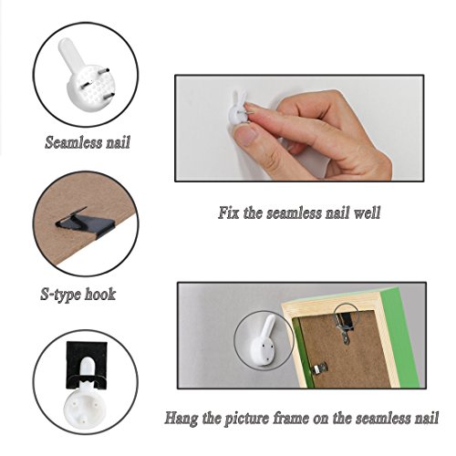 -. Feature : Picture size: 4x6 inch----10x15 CM, Only for WALL display / Frame Material: knotless pine , clear texture, highlighting the quality ; Screen Material--plexiglass,it is an important early development of thermoplastics. Plexiglass has good transparency, chemical stability, mechanical properties and weather resistance, easy to dye, easy processing, beautiful appearance advantages and so on. / Advantage: The cost of BOJIN wood picture frames are 3 times than the other so-called wooden frames, other wooden frames were made of a combination of wood chipper and skin,susceptible to corrosion, wear badly after a long time use. / Occasion: Nice functional frames for wedding photos ,family pictures , graduation picture, christmas presents / Installation by seamless nail: 1.Fix the seamless nail to the wall 2.Fit the frame and the seamless nail perfectly 3.Hang the picture frame on the seamless nail