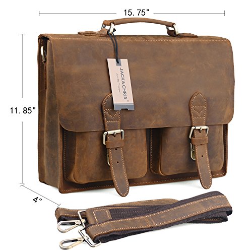 -. Brand : Jack&Chris -. Color : Brown -. Department : mens -. EAN : 0652210366379 -. Feature : Dimension: 15.75 x 11.85 x 4 inches (40 x 30 x 10 cm) / Material: high quality real cow leather / Antique Brass hardware, Adjustable padded shoulder straps (appr. 90 ~ 155 cm), Front flap with easy-open push lock closure / Structure: 1 x main compartment (fits for up to 15.3 inch Laptop), 1 x padded laptop compartment (fits for 14 inch laptop), 2 x front zip pocket and 1 x rear zip pocket, 2 x slip pocket, 2 x pen slot and 1 x zip pocket inside / 【Jack&Chris】is a trademark registered in the US, UK and other countries. Any unauthorized sellers will certainly bear the legal consequences of Copyright Infringement. -. PackageQuantity : 1 -. ProductGroup : Apparel -. ProductTypeName : LAGE -. Size : Large -. Title : Jack&Chris®Handmade Men's Crazy Horse Leather Briefcase Laptop Bag Messenger,NM1861 -. UPC : 652210366379