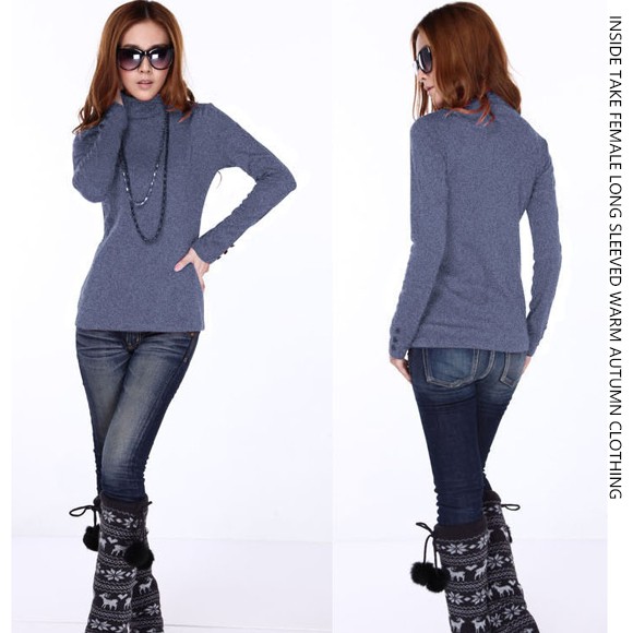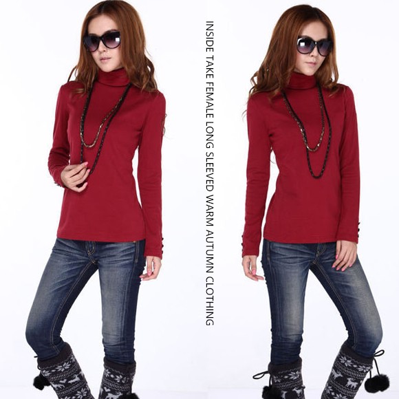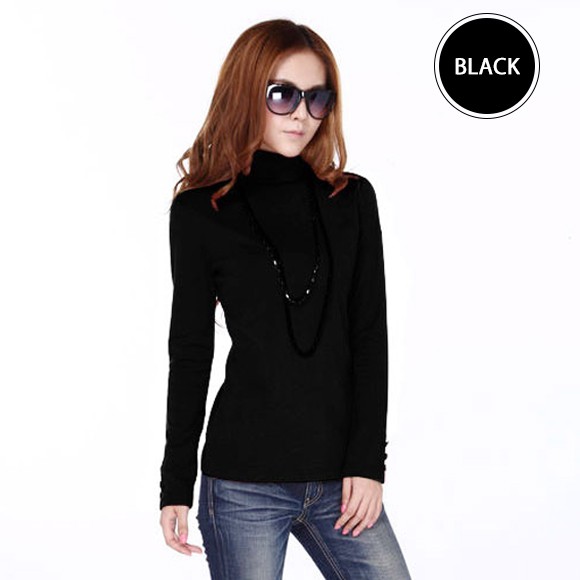 レディース用トップスです♪首元まですっぽり暖かいタートルネックデザインのトップスです☆重ね着しやすい薄手の生地感で、インナーとしても使えます!シンプルなデザインに袖のボタンがアクセント♪【商品詳細】カラー:ブラック/ネイビー/ワインレッドバスト:約80-88cm 総丈:約65cm素材:綿・アクリル