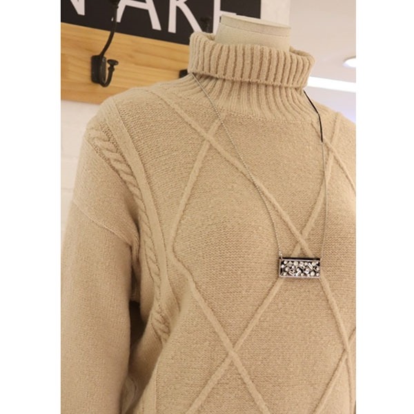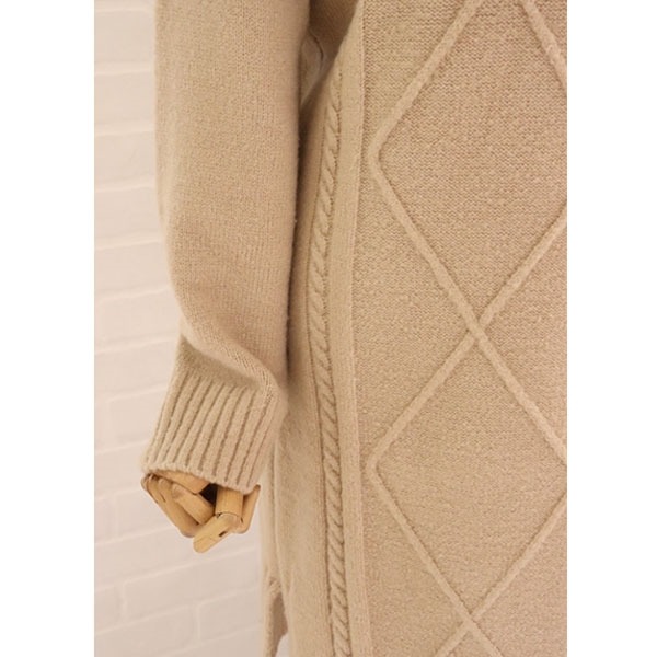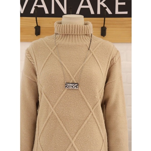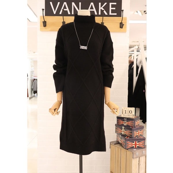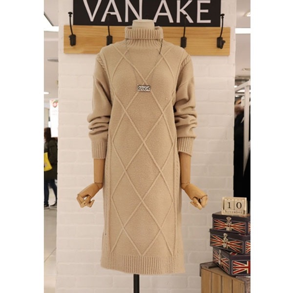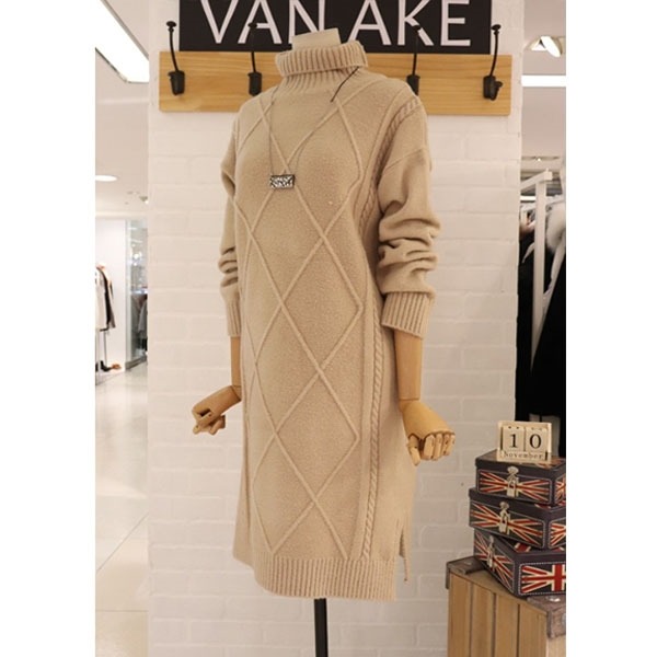 다이아 무늬로 포인트를 준 니트 롱 원피스 입니다.목터틀로 목을 감싸주어 보다 따뜻함을 느낄 수 있고, 밑단에 트임이 있어 활동하시기 편한 아이템 입니다.(모니터 해상도, 밝기, 조명, 컴퓨터 사양 및 각도에 따라 실물과 약간 차이가 있을 수 있습니다.)