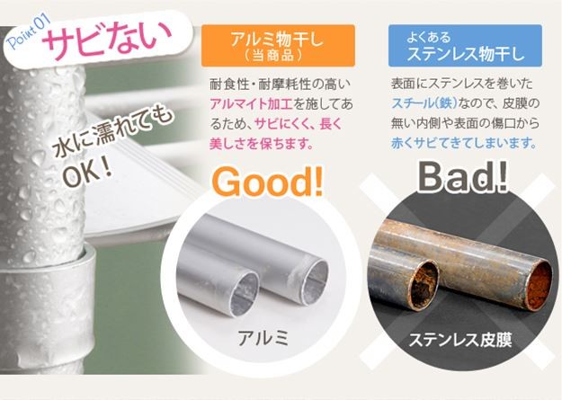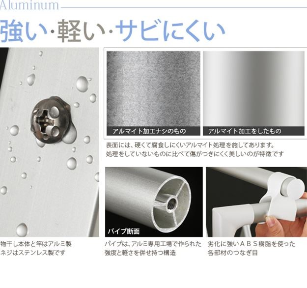 材質:本体・竿-アルミ、ジョイント-ABS樹脂、竿ジョイント-PP樹脂