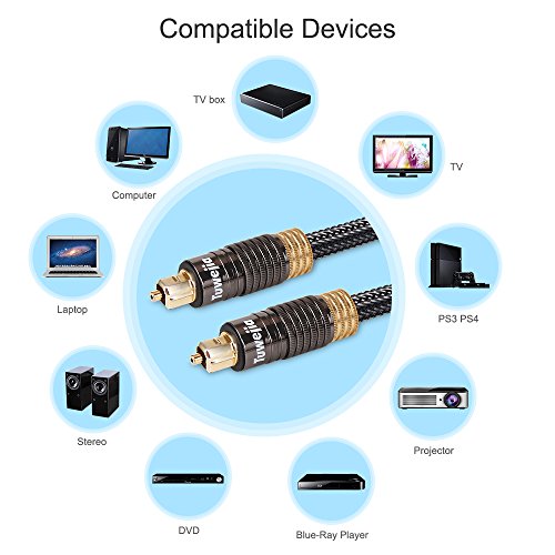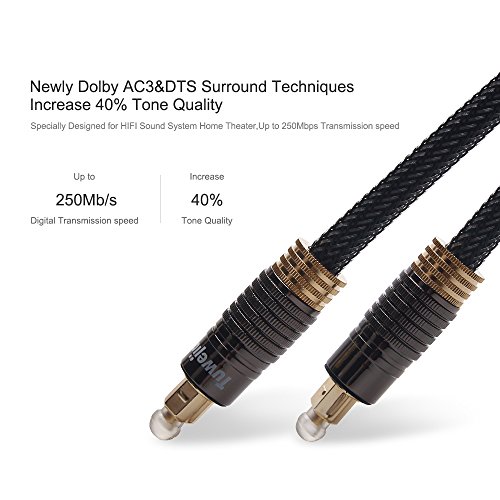 Studio : Tuwejia Publisher : Tuwejia Binding : Electronics Product Description TUWEJIA Digital Optical Cables from are manufactured from high-quality optical fiber with a polished lens and gold-plated collar. The stylish braided net jacket adds flexibility and durability for years of listening pleasure. A 1mm low-loss core conductor maintains an accurate digital signal. Optical cables transfer the signal using light; thus completely eliminating any chance for RFI, EMI or ground loop interference. Connect your DVD, CD, Mini Disc, DAT, Game Console or other digital audio equipment for clear, full and richly detailed sound. 1.Connectors:TOSLINK to TOSLINK 2.Low-loss core ensures low distortion 3.Non-slip rubber grip connector provides for easy installation 4.?Flexible jacket makes installation easy 5.Protective plastic cover protects lens from dust, dirt and other material 6.Digital Audio Cable provides you the cleanest possible signal, even at extreme volume levels. 7.?These cables use 1mm low-loss core, low-jitter synthetic fiber and heavy metal connectors to dampen vibration, giving you the ultimate listening experience. 8.Optical cables transfer the signal using light; thus completely eliminating any chance for RFI, EMI or ground loop interference. 9.?GOLD-PLATED FERRULE prevents corrosion and provides for maximum protection of the fiber tip. 10.Guaranteed reliability with a lifetime warranty