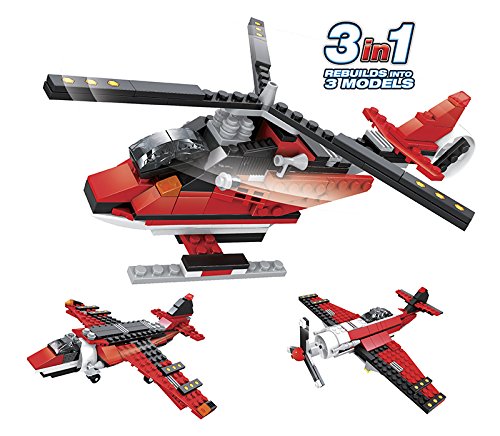 -. Feature : Zoom across the sky with this 3 in 1 helicopter! / Rebuilds into 2 other models, a second world war fighter plane and a high wing type aircraft! / Fully compatible with other leading brands / For ages 6 and up