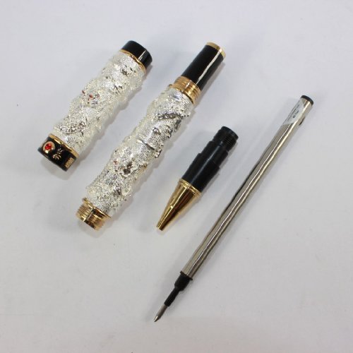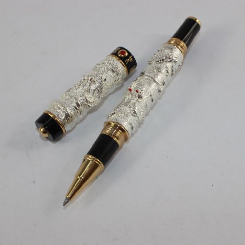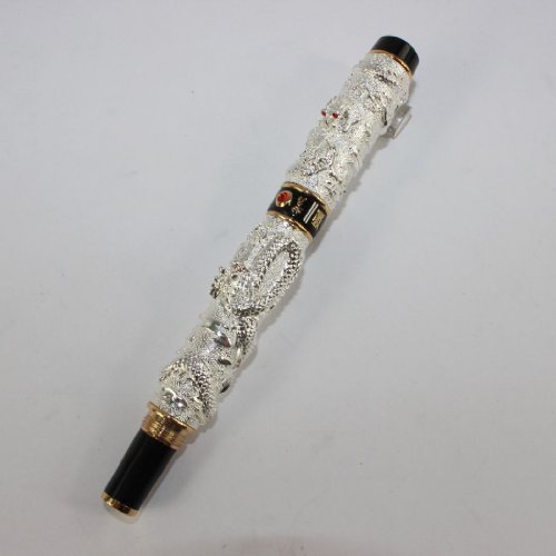 Jinhao Silver Double Dragon Rollerball Pen with Black