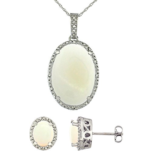 -. Binding : Jewelry -. Brand : Silver City Jewelry -. Department : womens -. Feature : 10K Solid Gold / Naturally-vibrant, superior quality color gemstone / High Quality Genuine Diamond Accents / Gold chain included / Made in the USA -. ProductGroup : Jewelry -. ProductTypeName : FASHIONOTHER -. Title : 10K White Gold Diamond Natural Oval Opal Earrings & Pendant Set