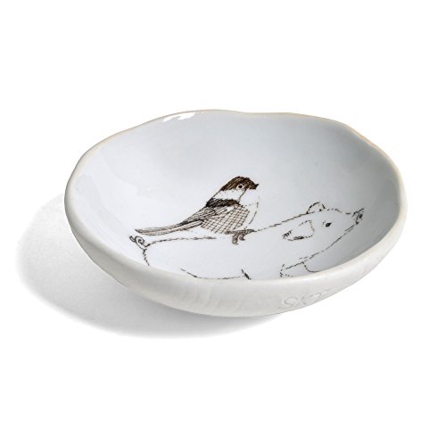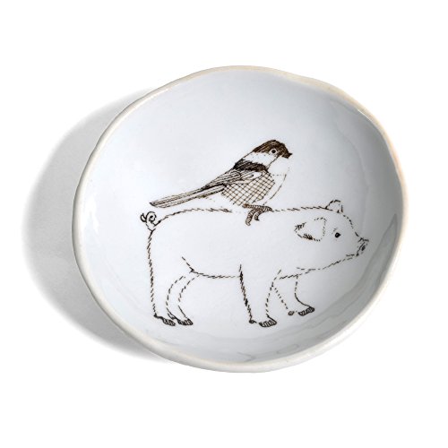 SKT Ceramics Pig with Bird 3.5-inch Round Dish, White