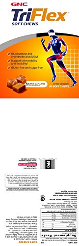 -. Binding : Health and Beauty -. Brand : GNC -. EAN : 0048107179632 -. Feature : Glucosamine And Chondroitin Plus Msm / Support Joint Mobility And Flexibility / Gluten Free And Sugar Free / Soft Chews / Tr.i.f.l.exTM Soft Chews Are A Convenient Alternative To Pills And A Great Addition To Your Daily Nutrition And Health Regimen. They Have Glucosamine And Chondroitin To Help Support Joint Mobility And Flexibility.They Also Contain Msm. -. Label : GNC -. Manufacturer : GNC -. MPN : 534871 -. PackageQuantity : 1 -. PartNumber : 534871 -. ProductGroup : Health and Beauty -. ProductTypeName : HEALTH_PERSONAL_CARE -. Publisher : GNC -. Size : 60 servings -. Studio : GNC -. Title : GNC Tr.i.f.l.ex Soft Chews - Salted Caramel -. UPC : 048107179632