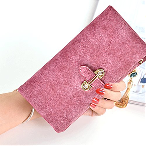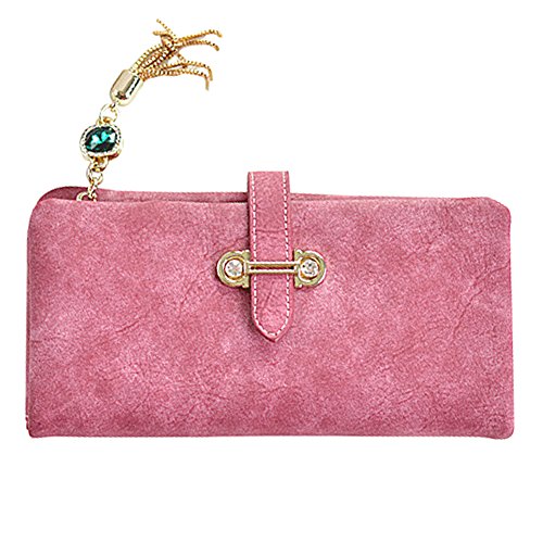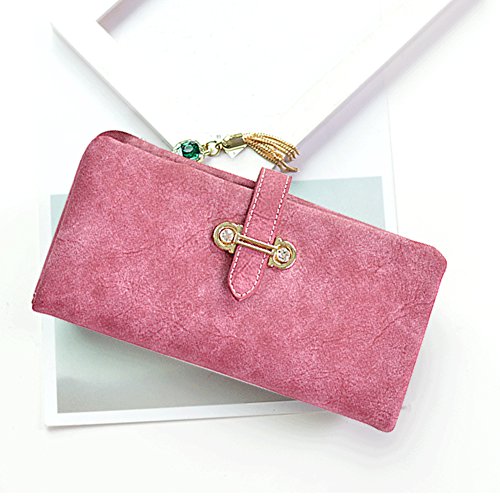 - ★ UNIQUE and SAMRT DESIGN ★: Solid color, Buckle closure with zipper, fringed pendant and other fashion elements. The line around wallet is delicate,tidy and neat. High Strength and Superior Durable, Eco-friendly