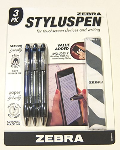 Zebra StylusPen Ball Point and Stylus Pen, 3 Count, (Blue Black Gray) + Micro Fiber Cleaning Clothes