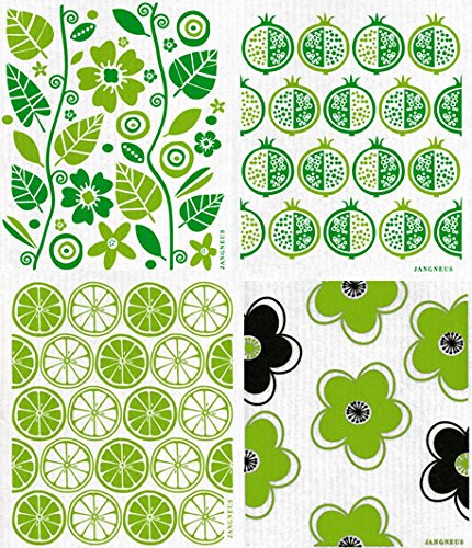 Swedish Dishcloth, Set of 4 (DZ) GREEN Fruits & Flowers