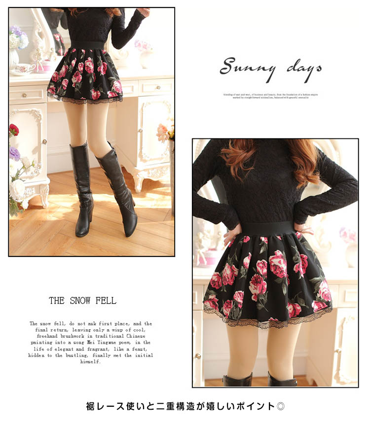 | ふんわりフレア感が女の子らしさを演出するミニスカート登場。ウエストゴムでウエストをキュッとしっかりホールド!ミニ丈なので脚長効果も抜群☆裾レース使いと二重構造が嬉しいポイント◎一枚あればちょっとしたお出かけやデートにもぴったり♪♪ | |