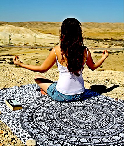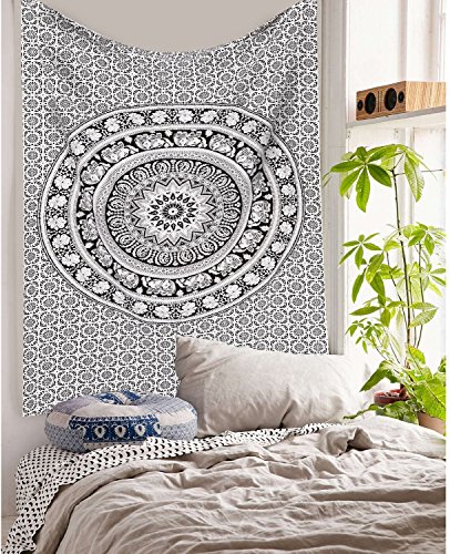 Hindu Tapestry Throw, Urban Outfitters Tapestry, Wall Decor, Bedspreads Bohemian Elephant Mandala Art Design, twin bedding bedroom. No stains, cotton, 55’’x85’’ +Meditation Ebook.