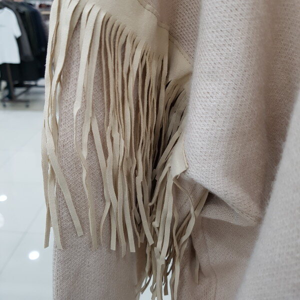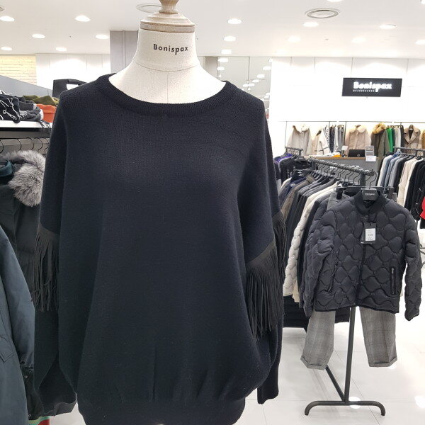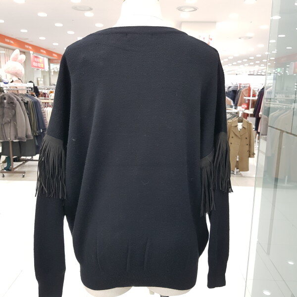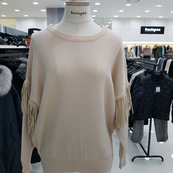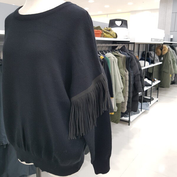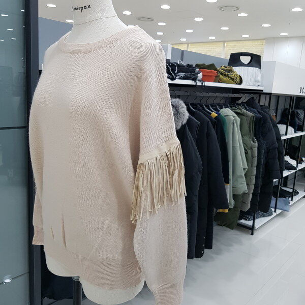 소매부분에 수술로 디자인한 라운드 니트티 입니다ㆍ허리부분에 살짝 시보리 디자인이 깔끔해보는 스타일