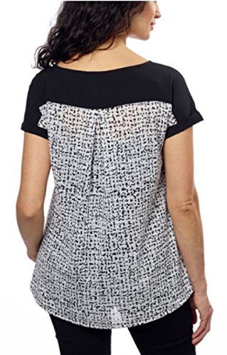 -. Binding : Apparel -. Brand : -. Color : White & Black -. Department : womens -. Feature : Small pocket at left chest / Pleat at center back / Crew neckline / Slight high-low hem & Short sleeve with cuff detail / Camisole recommended but not included -. ProductGroup : Apparel -. ProductTypeName : SWEATER -. Title : Jeans Ladies Knit Top - White/Black