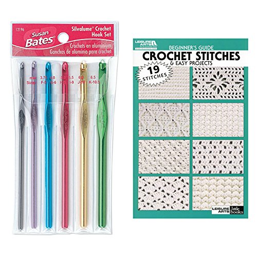 Crochet Hook Set 6 pcs and 19 Crochet Stitches Book - Beginners Guide - Bundle