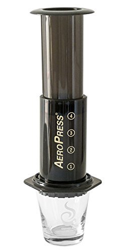 The aeropress is a completely new kind of coffee press that brews absolutely delicious, rich coffee without bitterness. In one minute, the aeropress will make 1 to 4 cups of american or espresso style coffee. Coffee brewed in an aeropress is rich but smooth for good technical reasons. The first and most important reason is brewing speed. Coffee yields its rich flavors quickly. From when you add hot water to when you are ready to drink, the aeropress takes about 30 seconds, just like a fine espresso machine. The time required to fill a drip coffee maker pot or the steeping time required for a traditional coffee press is measured in minutes, not seconds, and because of that, they brew bitter, acidic coffee. When brewing coffee with an aeropress, you use very hot but not boiling water, you use finely ground coffee, and the filter prevents any grit from getting into your cup, all of which are additional important reasons aeropress brewed coffee is so remarkably delicious. Fast and convenient, the aeropress coffee and espresso maker makes one of the best cups of coffee you'll ever taste. This innovative uses the ideal water temperature and gentle air pressure brewing to produce coffee and espresso that has rich flavor with lower acidity and without bitterness. It makes 1 to 4 cups of coffee or espresso, enough for 1 or 2 mugs, features a micro filtered for grit free coffee, and takes just 1 minute to make coffee, actual press time takes only 20 seconds. Its aeropress time. Fast and convenient, the AeroPress Coffee and Espresso Maker makes one of the best cups of coffee you'll ever taste. This innovative uses the ideal water temperature and gentle air pressure brewing to produce coffee and espresso that has rich flavor with lower acidity and without bitterness. It makes 1 to 4 cups of coffee or espresso (enough for 1 or 2 mugs), features a micro filtered for grit free coffee, and takes just 1 minute to make coffee (actualpress time takes only 20 seconds).