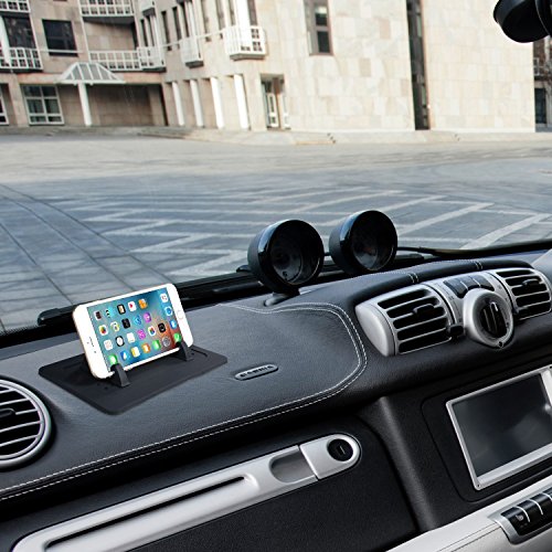- Car Phone Mounts, Car holder for cell phone, simple structure and easy installation. Black dash mat with holes base design, security and stably. Also a good choice as desktop holder stand at office or home to hold your suglasses or watch tv.