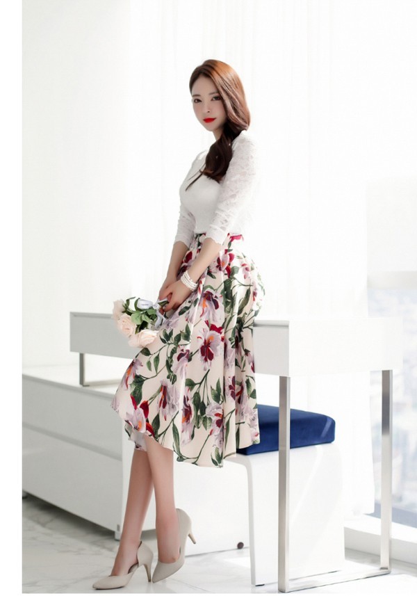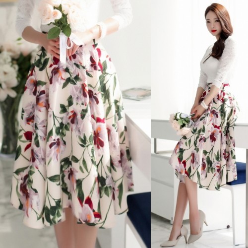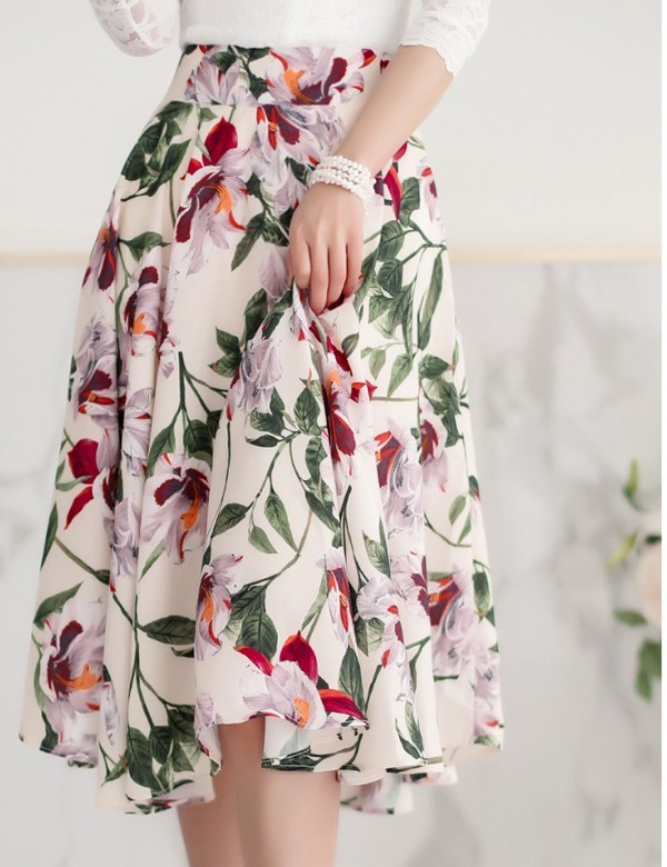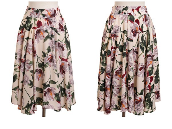 花柄ハイウェストフレアスカート淡いピンク地に大きめの花柄で女性らしさを引き立たせるウエストラインで脚長効果抜群