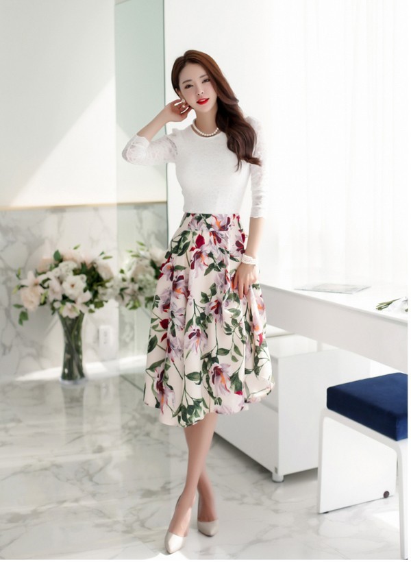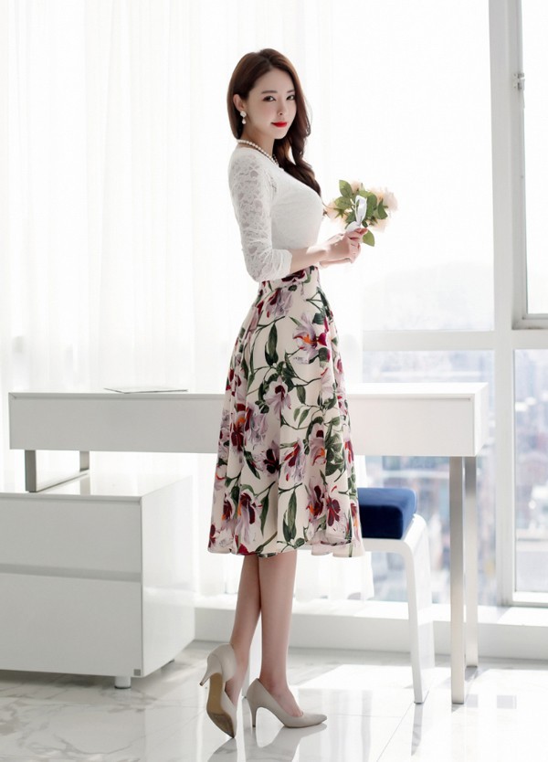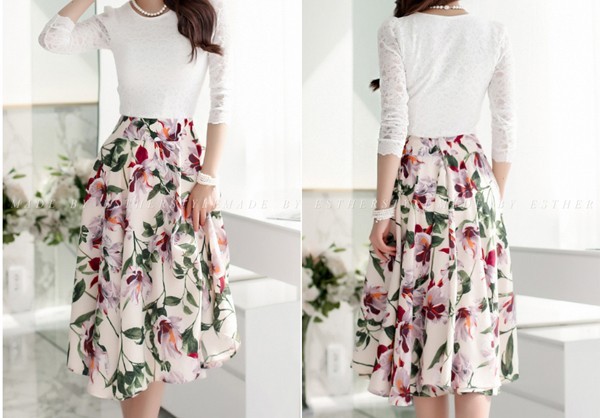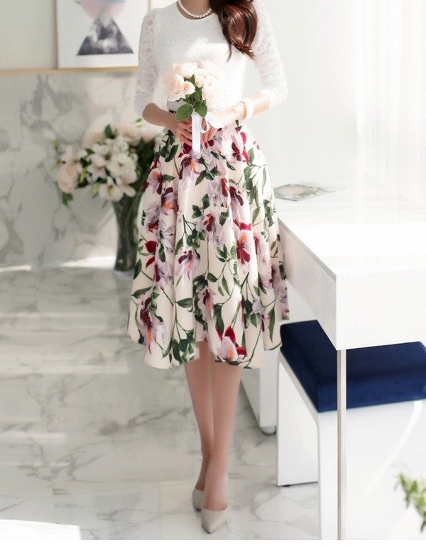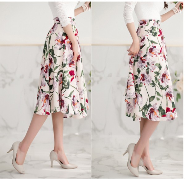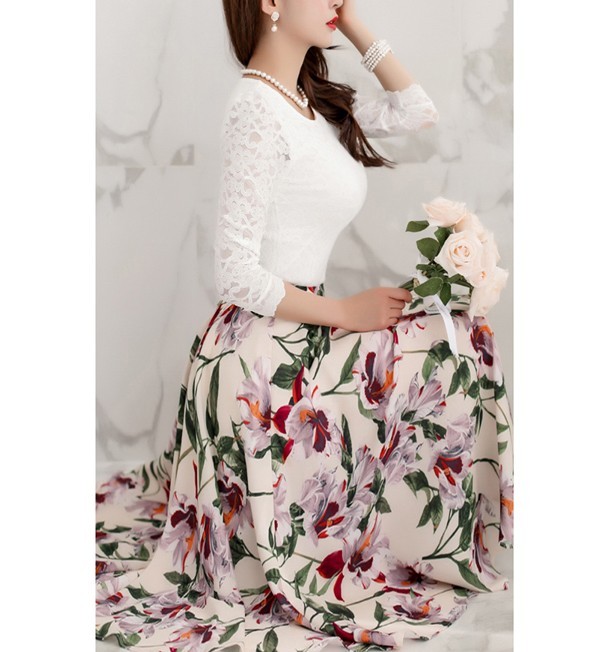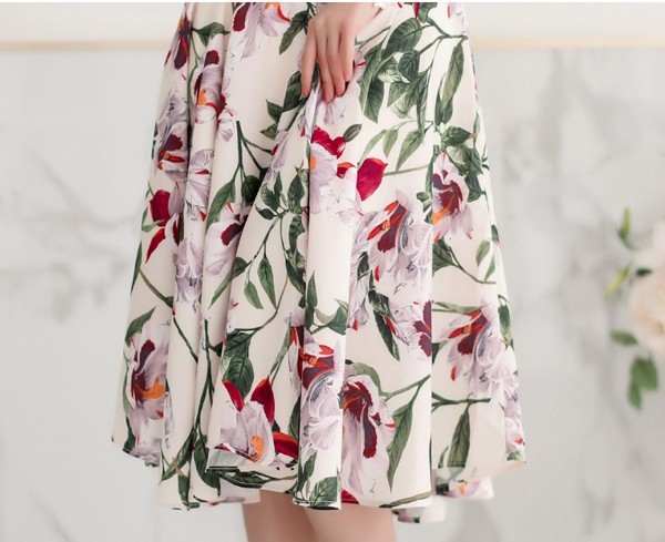 商品名:スカート フレアスカート 花柄 きれいめ 膝丈 30代 40代 レディース ファッション