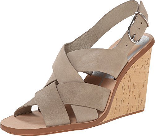 Open-toe dress sandal featuring natural leather upper and cork-covered wedge heel