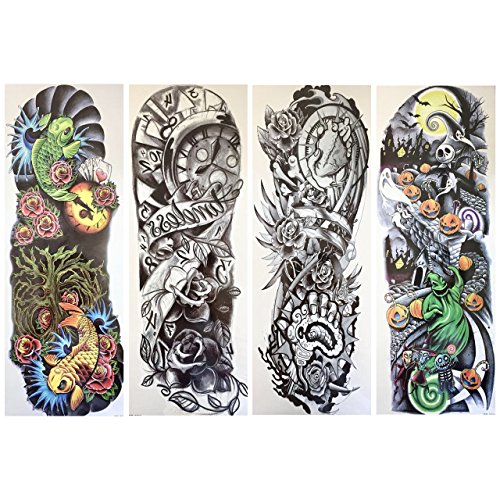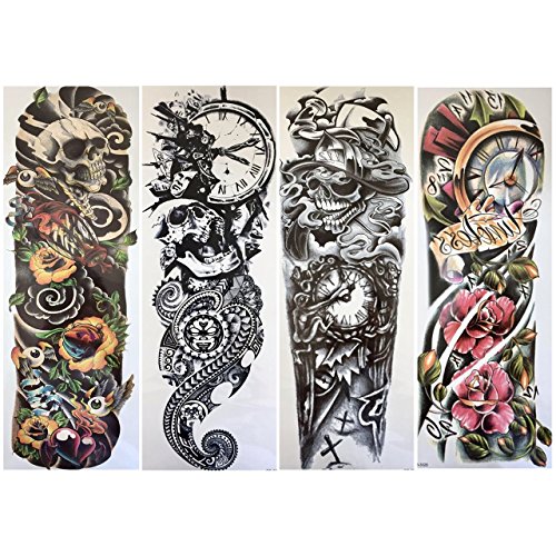 10 Sheets included! APPLICATION: 1 - Cut the tattoo and remove the paper cover 2 - Apply tattoo face down on skin 3 - Soak a sponge with water and soak tattoo entirely. Wait about 25-30 before removing. 4 - Prior to completely removing cover check that the tattoo has completely transferred onto skin. If not, repeat previous steps. If tattoo has transferred onto skin the continue to gently remove cover. Do not apply to sensitive skin or if allergic to adhesive. Do not apply near eyes. Not recommended for children under 3 years old.Feature