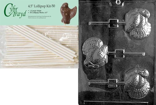 Cybrtrayd 45St50-T030 Turkey Lolly Thanksgiving Chocolate Candy Mold with 50-Pack 4.5-Inch Lollipop Sticks