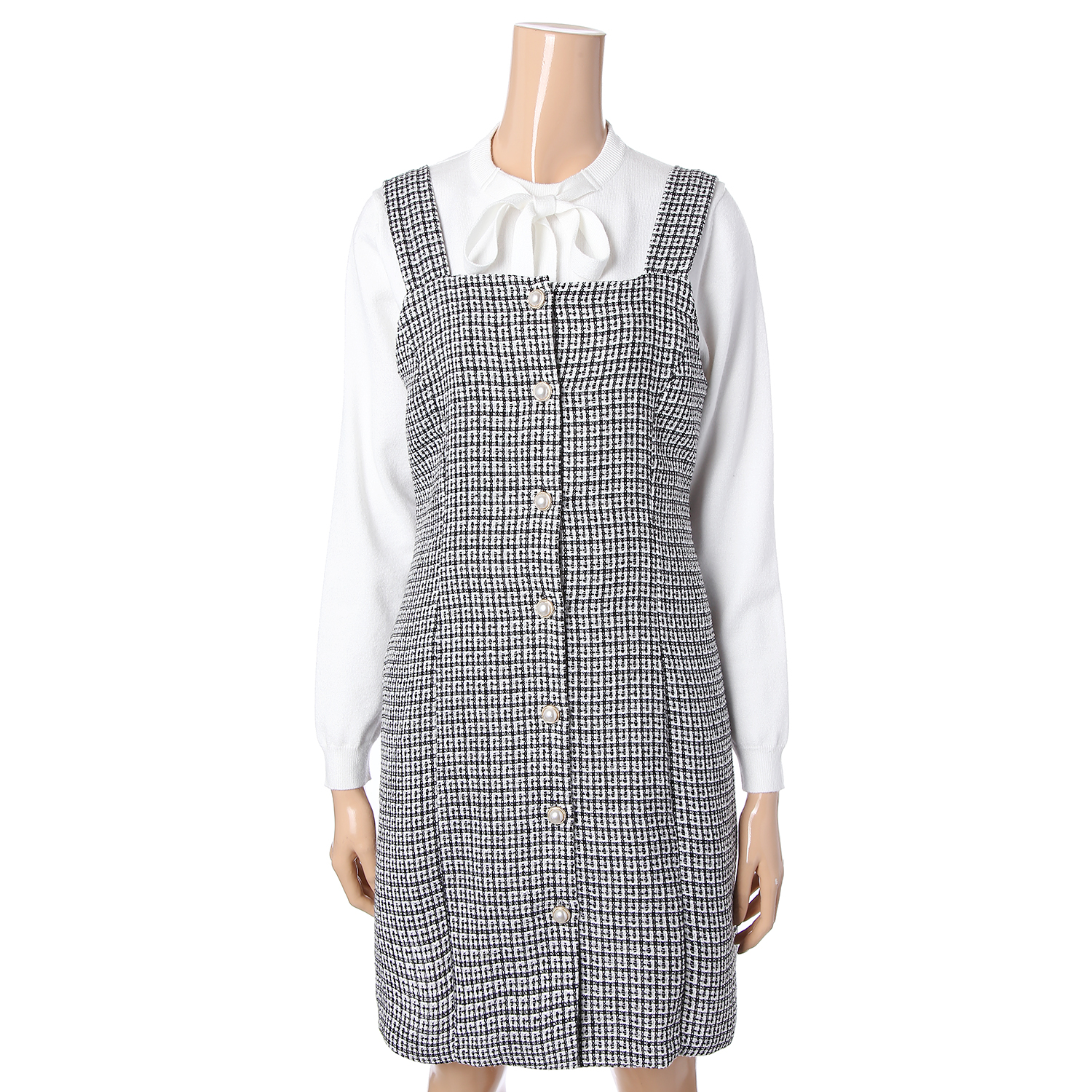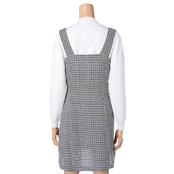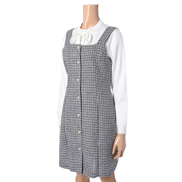 전체적으로 55 반정도의 사이즈로 여성스러움을 강조한 원피스입니다 . 신축성은 없으니 참고바랍니다 .
