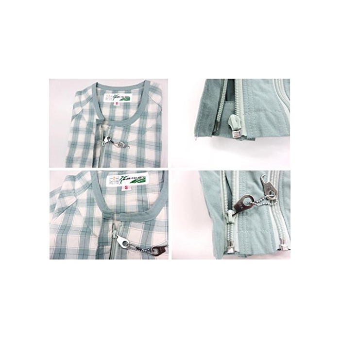 가슴 팍부터 발목까지 1책의 패스너에 개폐 이 생기는 풀 오픈 타입.제균가공 폴리에스텔 사용.