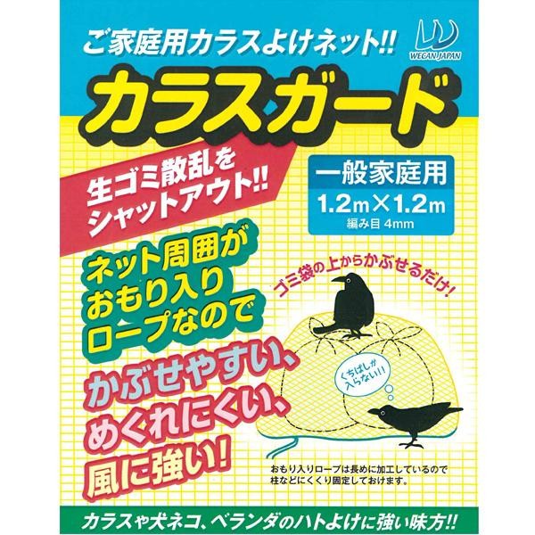 ネット周囲のロープにおもりが入ったカラス除けネットです。カラスのくちばしが入りにくい細かい編み目に、カラスが嫌がる色といわれているイエローカラーで被害防止に。 |