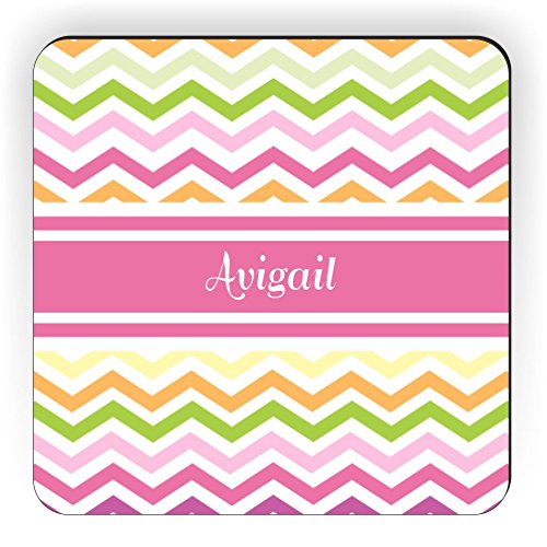 Rikki Knight "Avigail" Pink Chevron Name Design Square Fridge Magnet