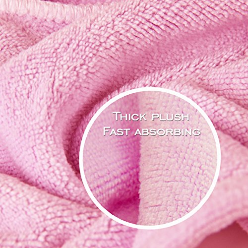 Absorbent Microfiber Hair Towel 2 Pack Hairizone Quick Dry Hair Turban Wraps Twist Hair Drying Towel with Elastic Loop for Kids Girls Women (Pink/Roseo)