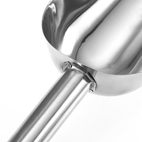 - Color: As shown. - Material: Stainless steel. - Size: About 23.5 x 8 x 4cm/9 x 3 x 1.6in. - Made of stainless steel, durable easy to clean. - It's quite easy to shovel down and come up with a full scoop of food pellets without much efforts. About 205g pet food per shovel. - Ideal for scooping Candies, Pet Food, Nuts, Flour, Popcorn, Cooking Ingredients, Coffee Beans and more.