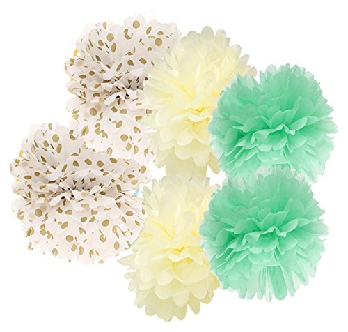 New release first birthday decoration mint gold tissue poms for girl, baby mint cream gold tissue paper flower paper lantern kit. A mixed bright color set that will light your party/wedding/baby shower,mint gold theme party or bridal paper decoration. .