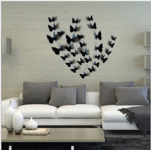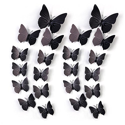 Romantiko 24 pcs 3D Butterfly Stickers Removable Wall Stickers for Home and Room Decoration (Black)