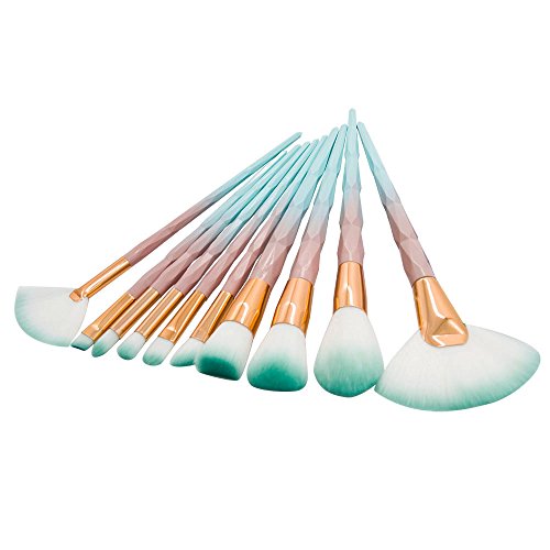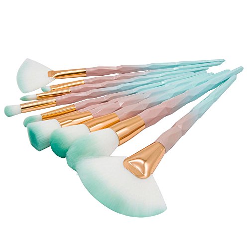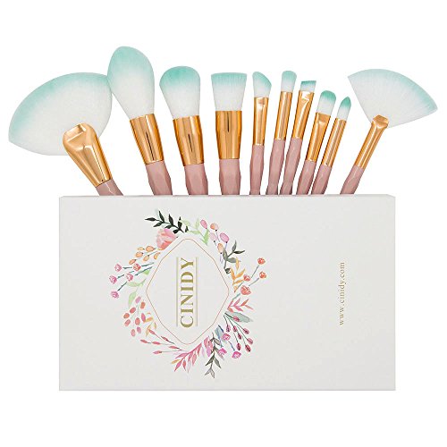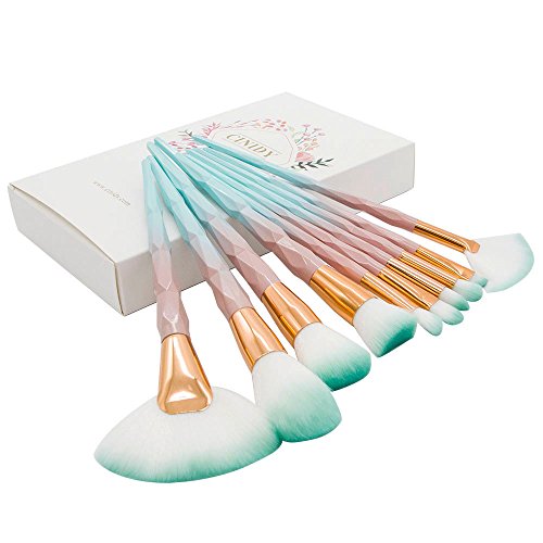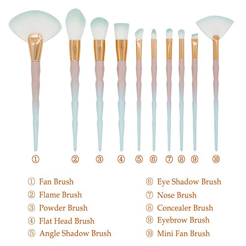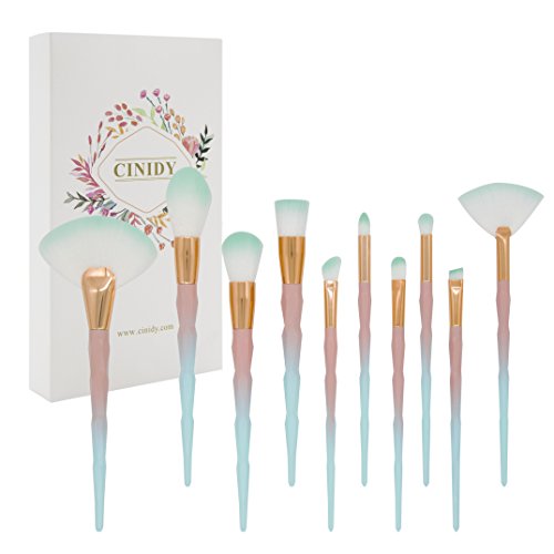 Cinidy Makeup Brushes Set 10pcs 3D Unicorn Premium Plastic Handle High Density Soft Nylon Bristles Kabuki Foundation Blush Eye Cosmetic Brushes with...