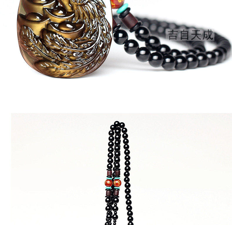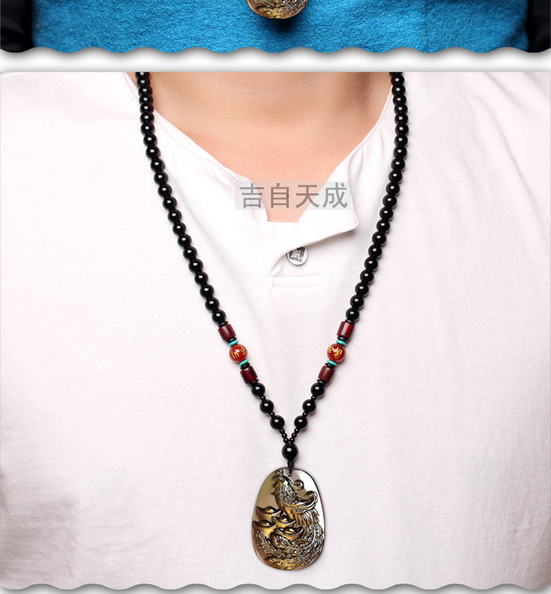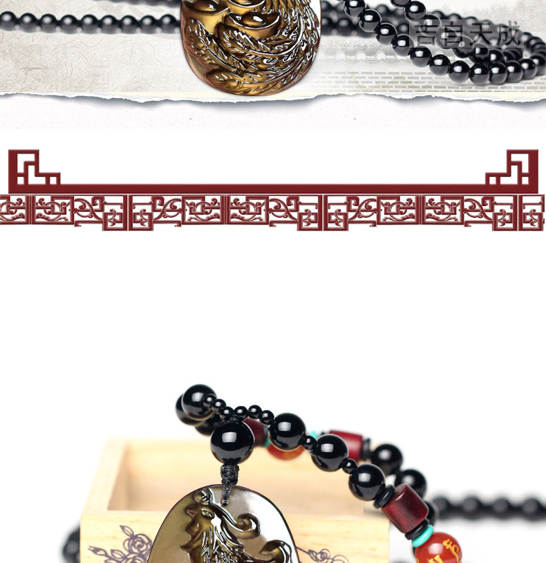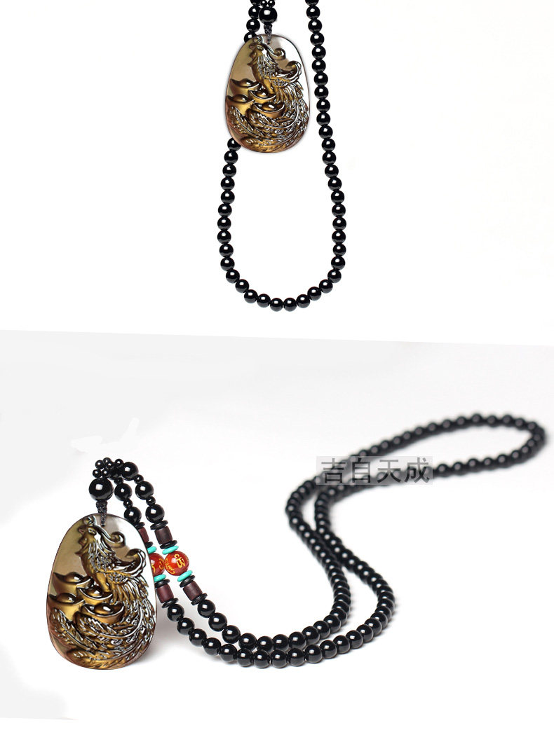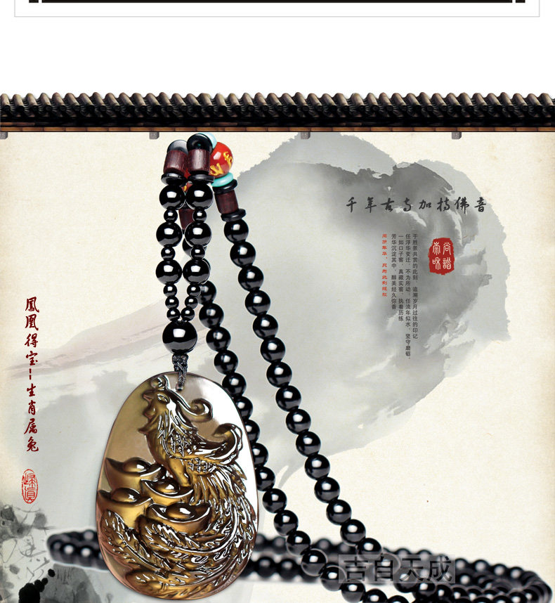 天然生肖属兔饰品黑曜石凤凰得宝吊坠鸡年本命年吉祥物