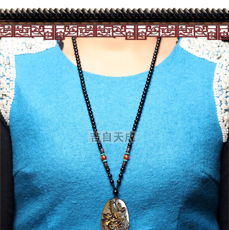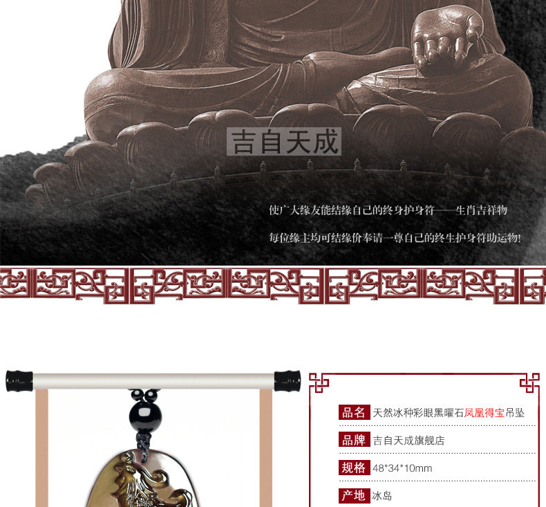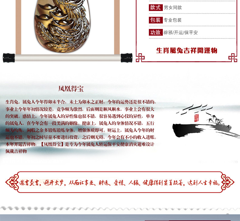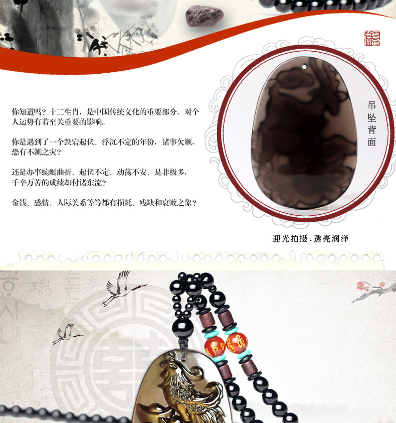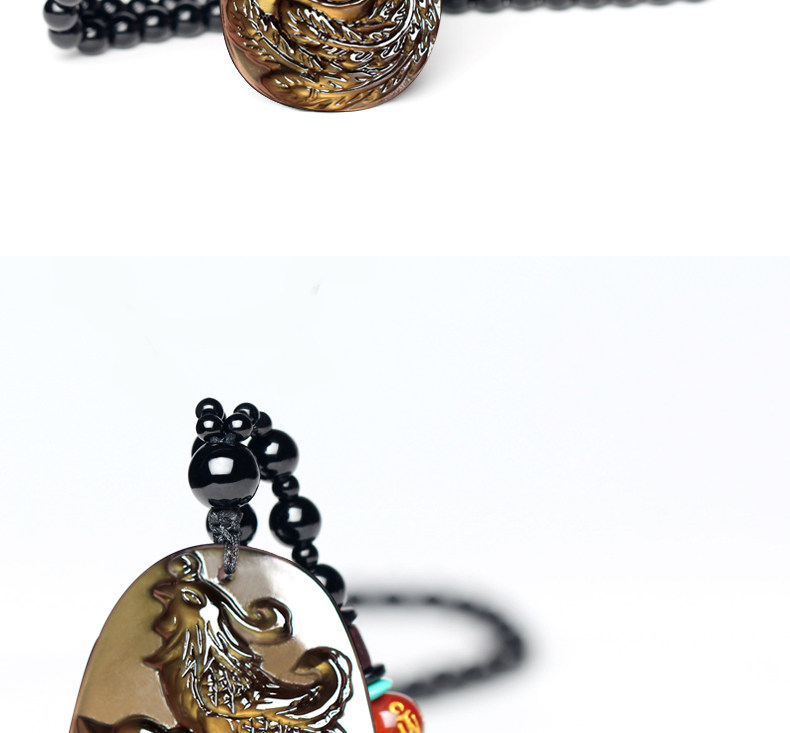 天然生肖属兔饰品黑曜石凤凰得宝吊坠鸡年本命年吉祥物