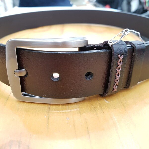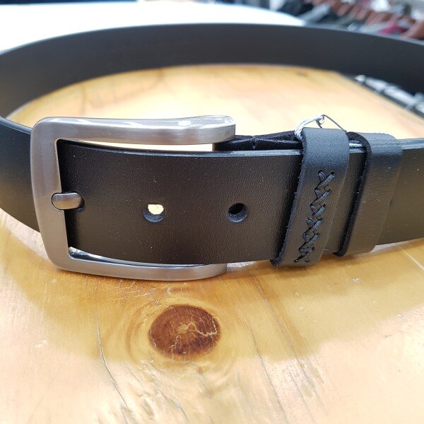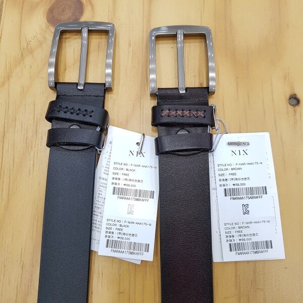 남성 캐주얼 소가죽 벨트입니다. 심플한 디자인의 바클 형태에 자수를 더한 포인트가 있는 벨트입니다.